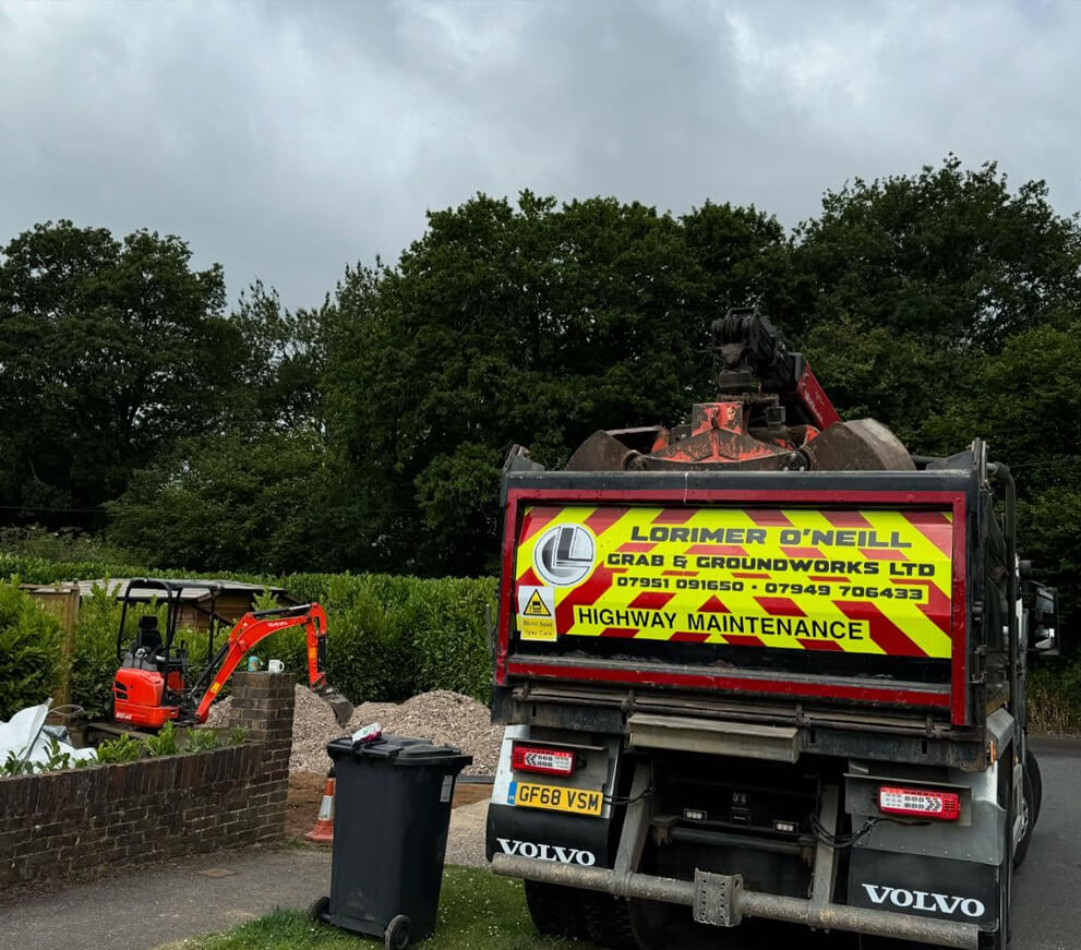 With man and machine hire services available in the Crowborough, Dorking, Horsham and Tunbridge Wells areas as well as in all surrounding locales, there isn’t a better choice for services of this kind than Lorimer O’Neill Grab & Groundworks Ltd. We are much more than just a groundworks company and offer our support to clients across all sectors on a fast and responsive basis.